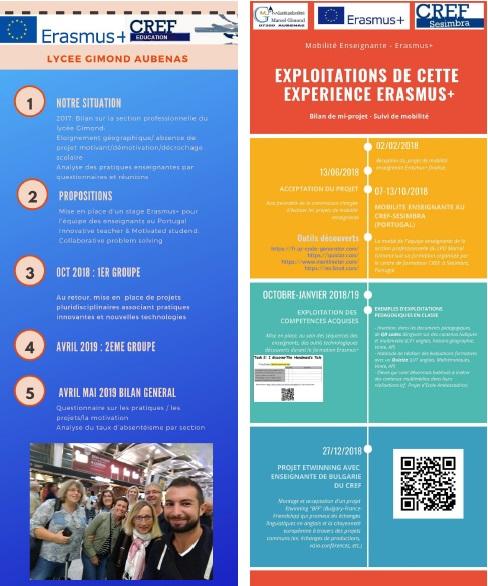 Un projet de formation Erasmus+ pour toute l'équipe des enseignants de la SEP du LPO Marcel Gimond d'Aubenas (Ardèche) a été monté. Six enseignants sont déjà partis se former sur les nouvelles technologies et méthodes d'enseignement innovantes au Portugal. L'autre moitié de l'équipe part en avril.