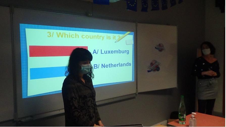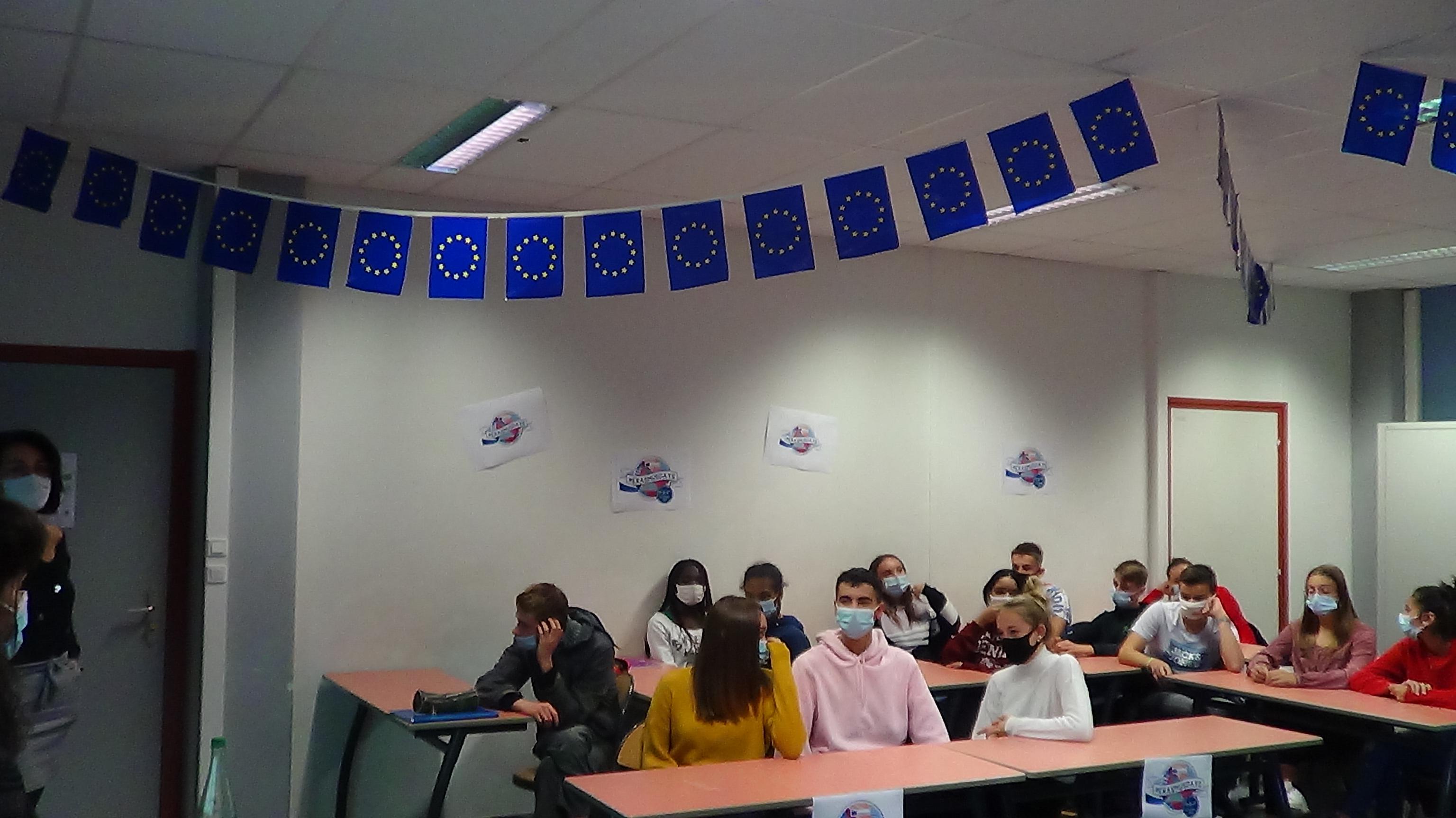Les élèves de 2ndes Bac Professionnel ont affronté les élèves de1ère Bac Professionnel à travers différents quiz portant sur les pays fondateurs, les pays membres, les capitales et les drapeaux. Les épreuves se sont terminées par un blind test sur les tubes qui ont eu le plus de succès en Europe. La maîtresse du jeu était l'assistante d'anglais. Les élèves ont bien participé et ont tous passé un agréable moment!