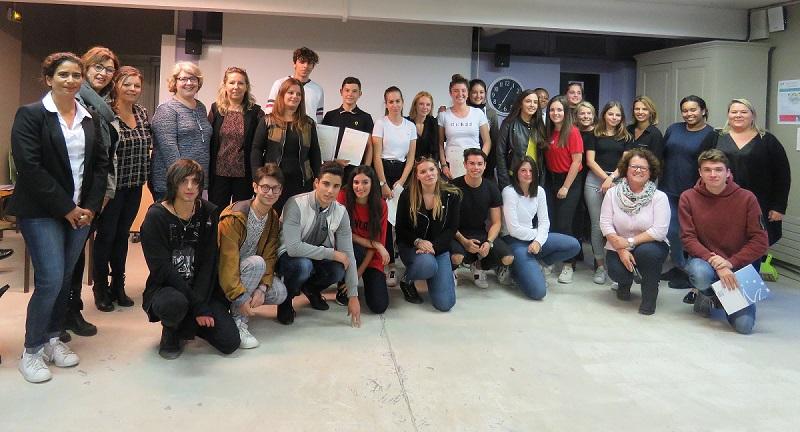 C’est avec beaucoup de joie que les élèves de Terminales de la Section Europe du lycée professionnel privé des Charmilles de Grenoble se sont vu remettre leurs Europass (portefeuilles de compétences) délivrés à la suite de leurs PFMP en Angleterre, Espagne et République Tchèque grâce à Erasmus+ et au consortium VALLEE4 proposé par la DAREIC. Ce temps fort a aussi été l’occasion de remettre aux jeunes les Certifications Cambridge, proposées aux élèves de 2nde Européenne, venant sanctionner un niveau A2 en anglais.
